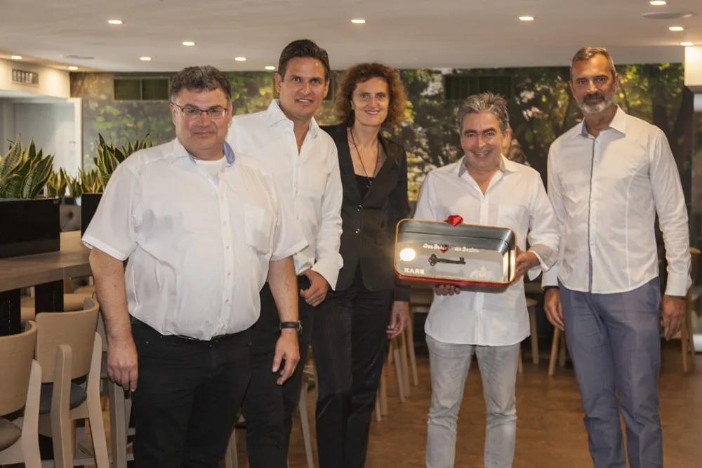Schlüsselübergabe an Innegrit Volkhardt von den Kare-Geschäftsführern Peter Schönhofen und Jürgen Reiter